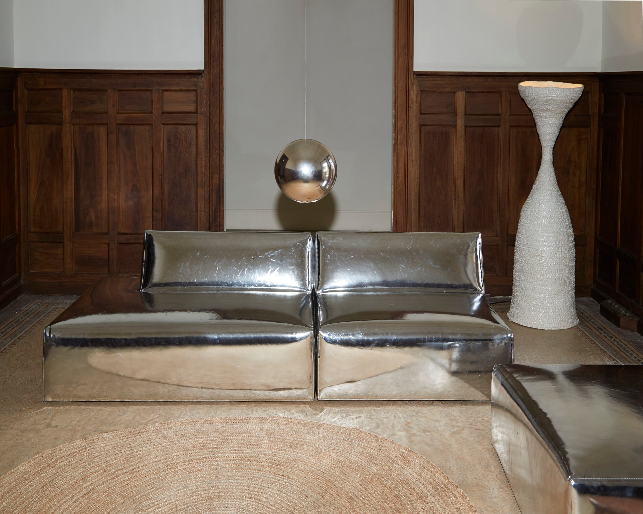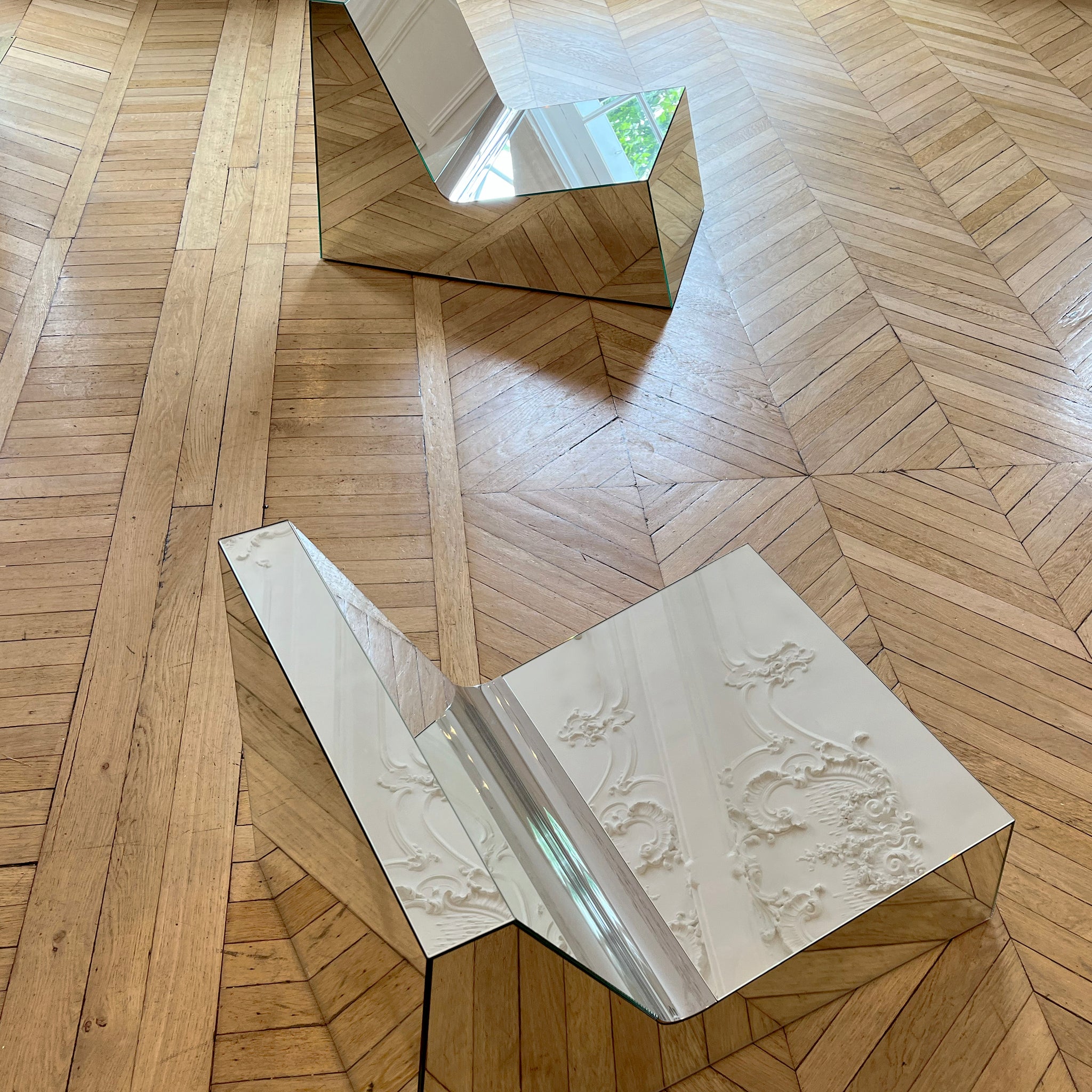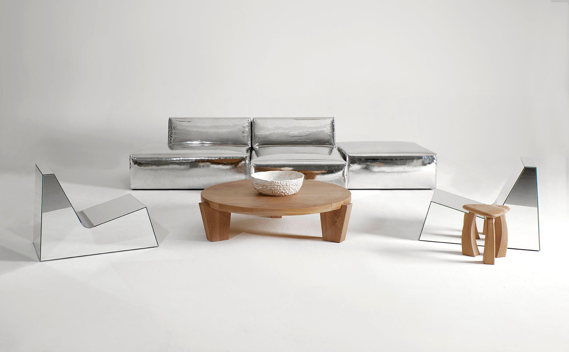 Drawing inspiration from various artworks that deal with reflections we wanted to create a functional furniture item that become a decorative object absorbing and influencing its own environment.