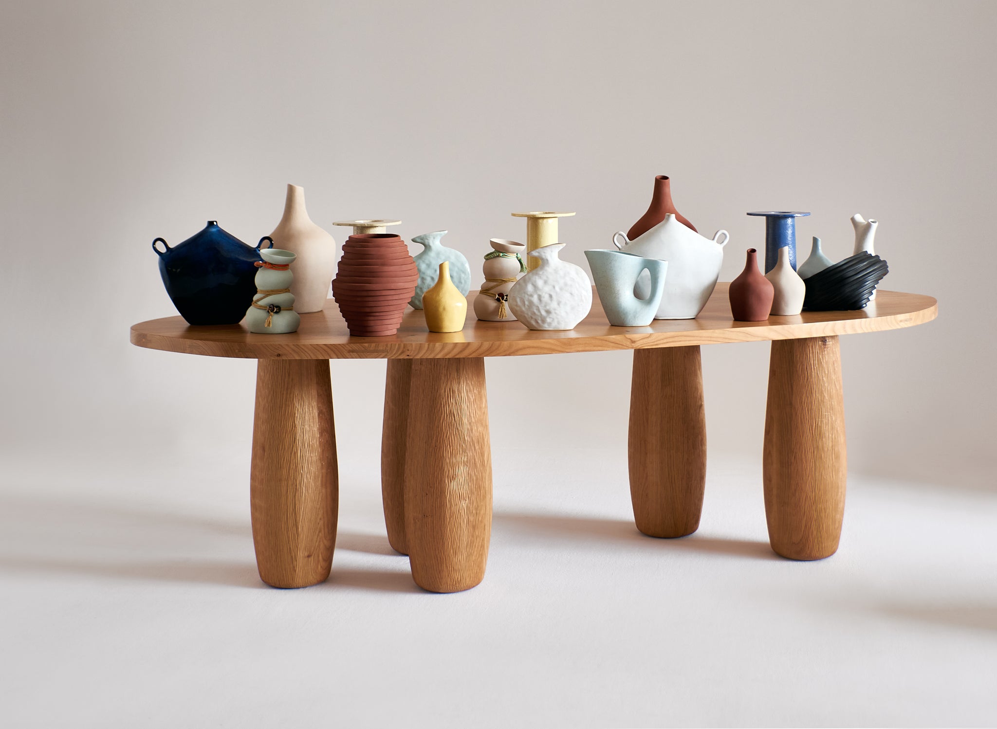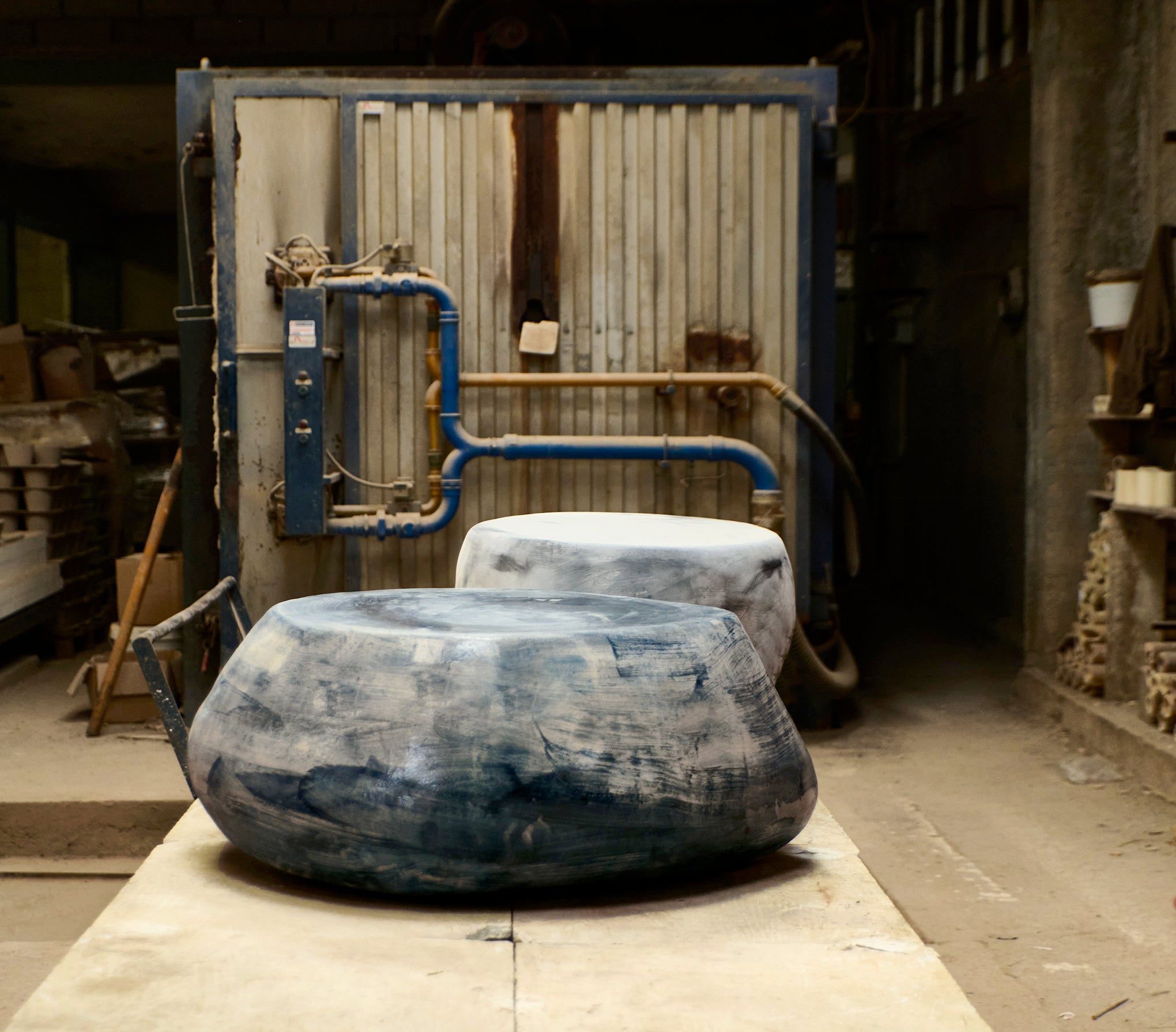 Bespoke set of a variety of hand-sculpted ceramic coffee tables. Each piece is made in Project 213A's in-house ceramic workshop and finished with a custom glaze.