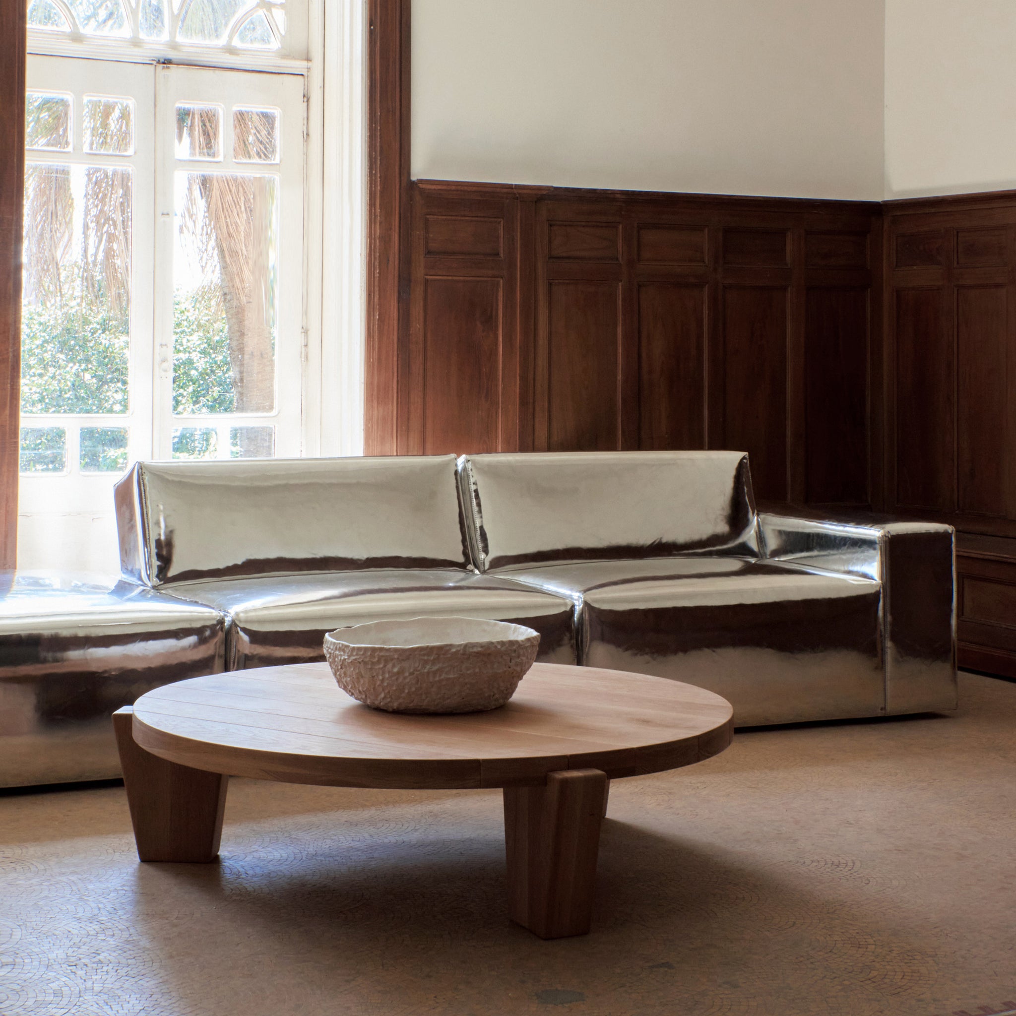 The lounge chair's shaped is based on the brutalist movement from the 20th century - becoming a piece of contrast with is harsh lines but soft appearance as it seems to dissolve in the world around it. We are very proud that this piece has been selected amongst others in the 2021 Sight Unseen Year book and has been featured in various magazine such as AD France and Elle Decoration.