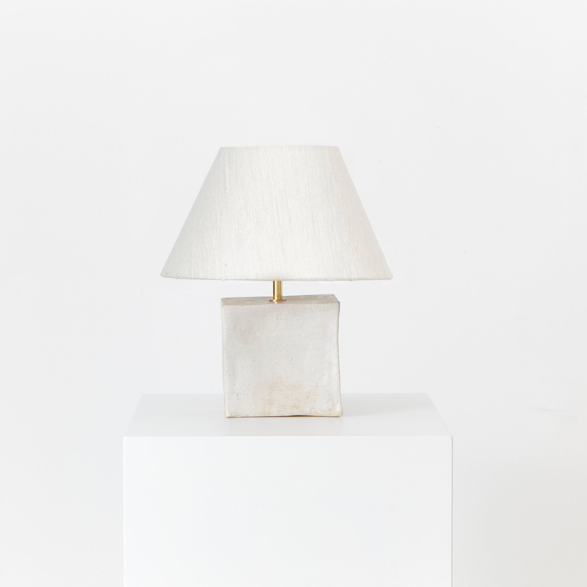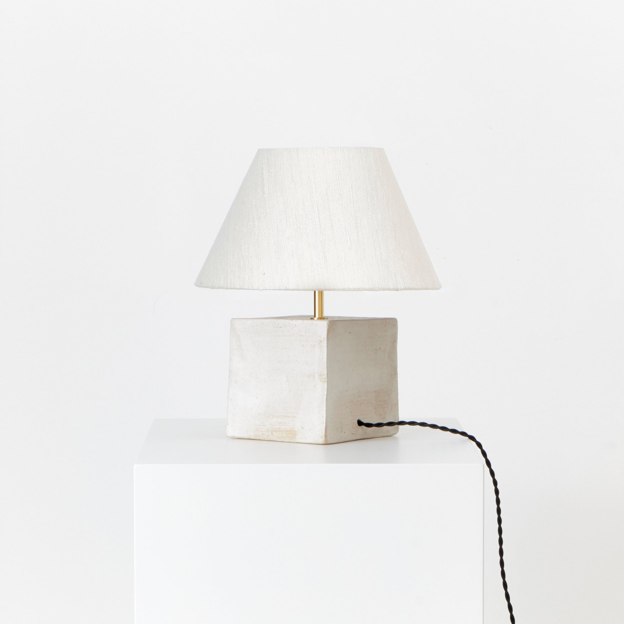 Artisanal table light with a cube ceramic base, made in Project 213A's own ceramic workshop. Each piece is unique due to its handmade nature, shapes and shades of the ceramic base can vary slightly.