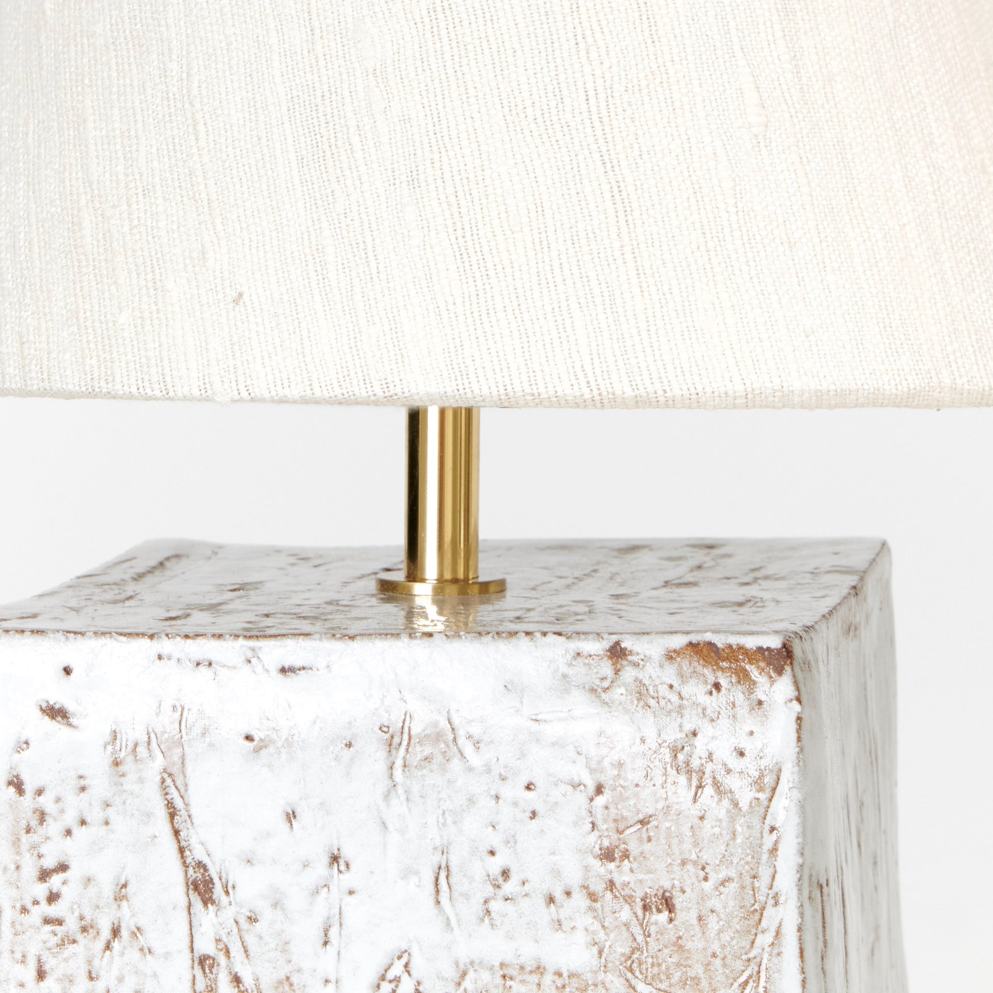 Artisanal table light with a cube ceramic base, made in Project 213A's own ceramic workshop. Each piece is unique due to its handmade nature, shapes and shades of the ceramic base can vary slightly.