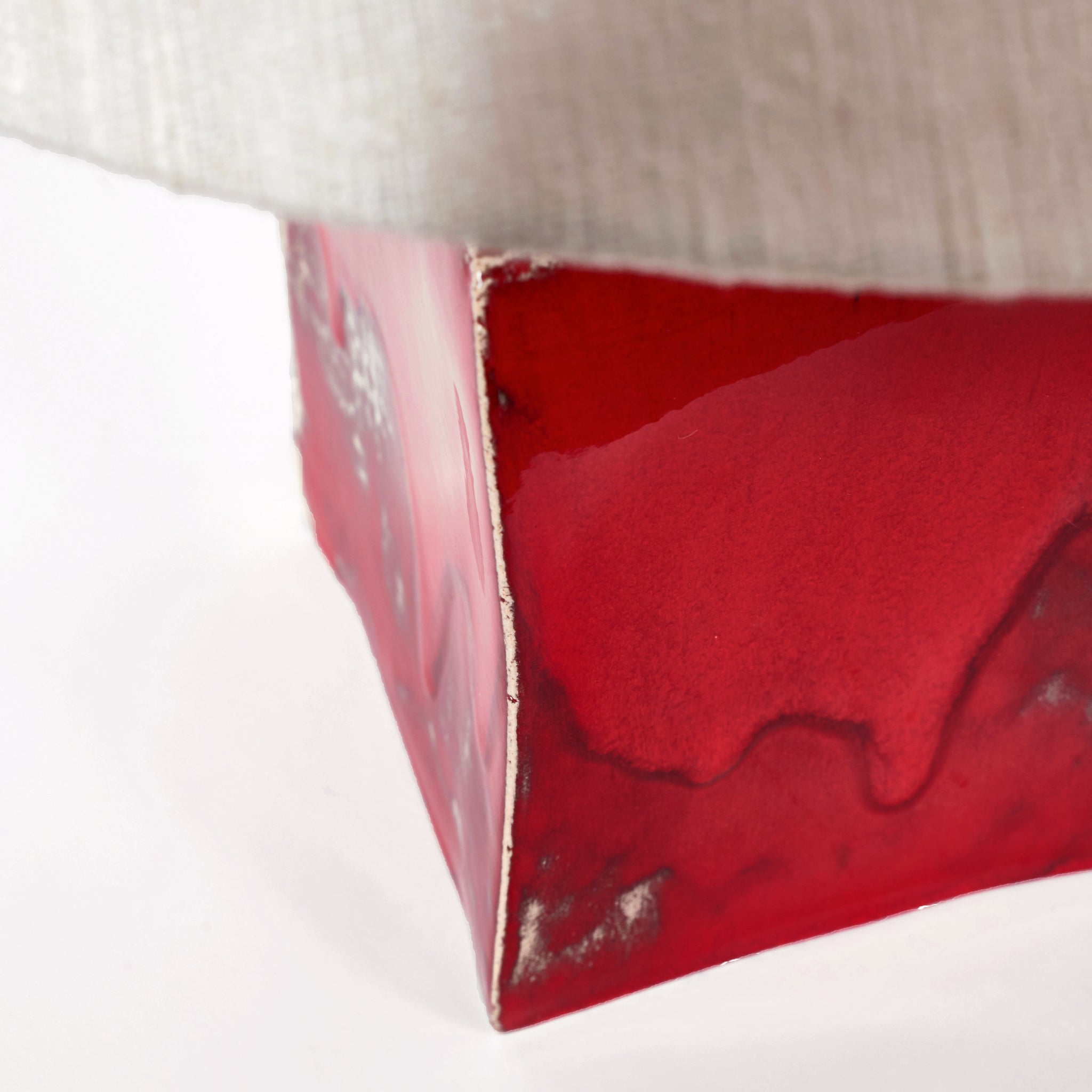 Artisanal table light with a cube ceramic base, made in Project 213A's own ceramic workshop. Each piece is unique due to its handmade nature, shapes and shades of the ceramic base can vary slightly.