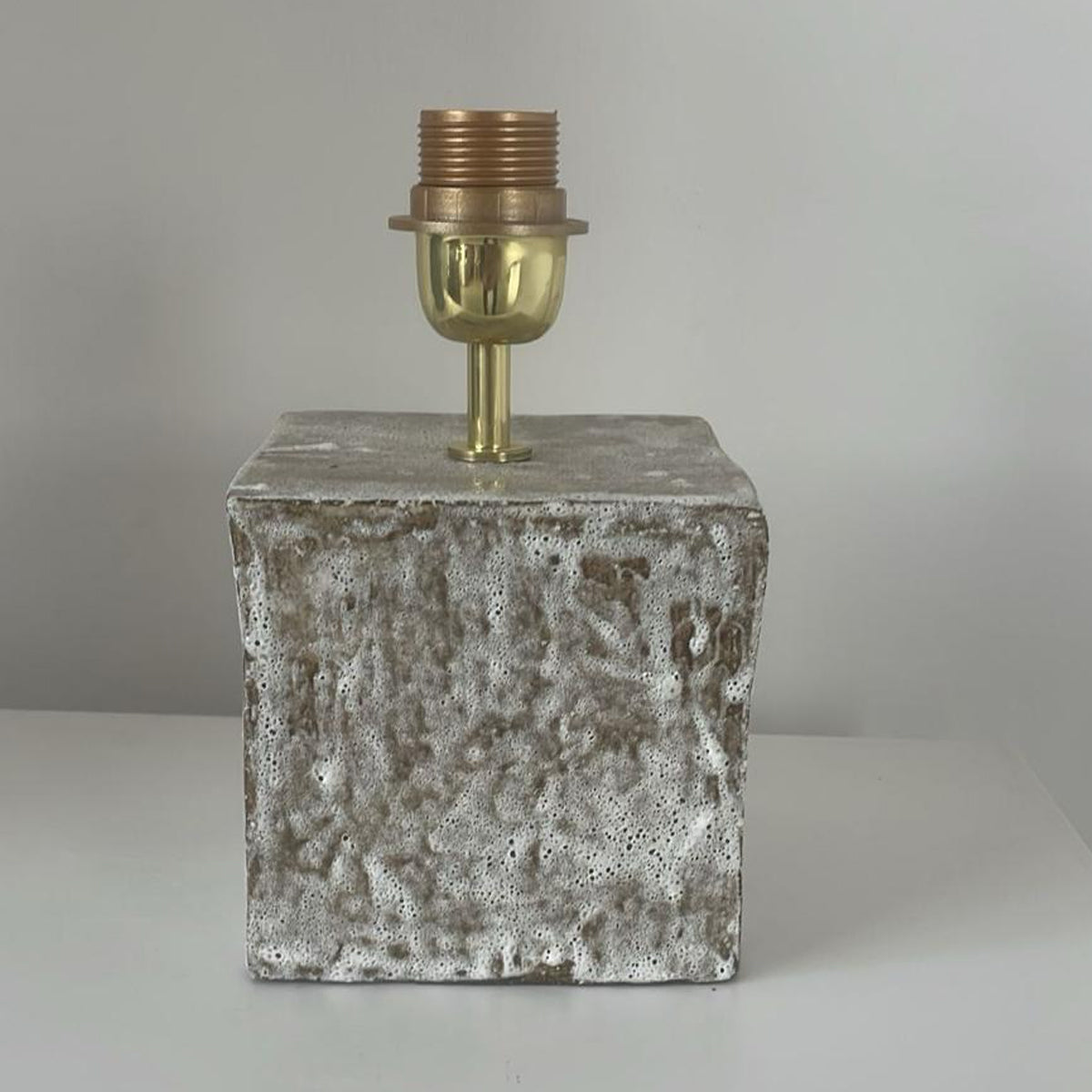 Artisanal table light with a cube ceramic base, made in Project 213A's own ceramic workshop. Each piece is unique due to its handmade nature, shapes and shades of the ceramic base can vary slightly.
