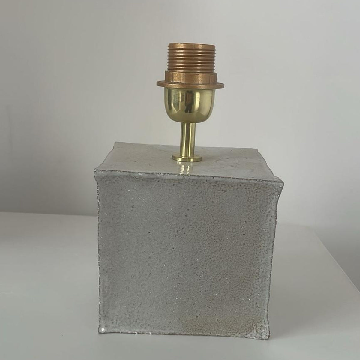 Artisanal table light with a cube ceramic base, made in Project 213A's own ceramic workshop. Each piece is unique due to its handmade nature, shapes and shades of the ceramic base can vary slightly.