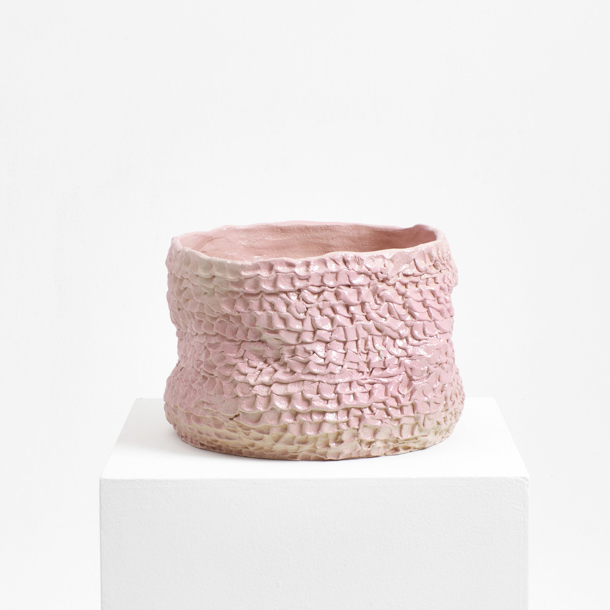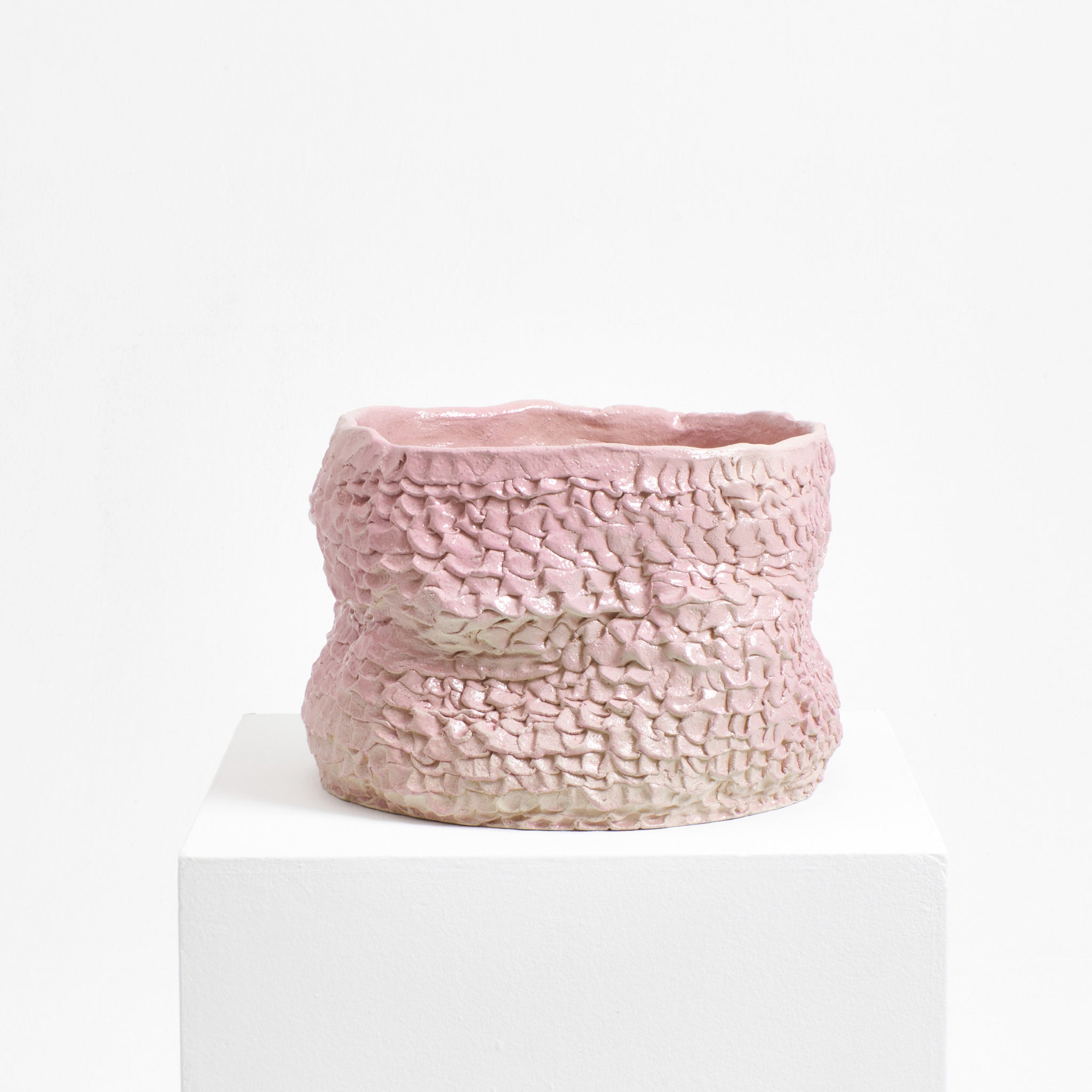 Artisanal planter created by skilled artisans in Project 213A's own workshop. Hand-sculpted ceramic with textured petal shaped finish.