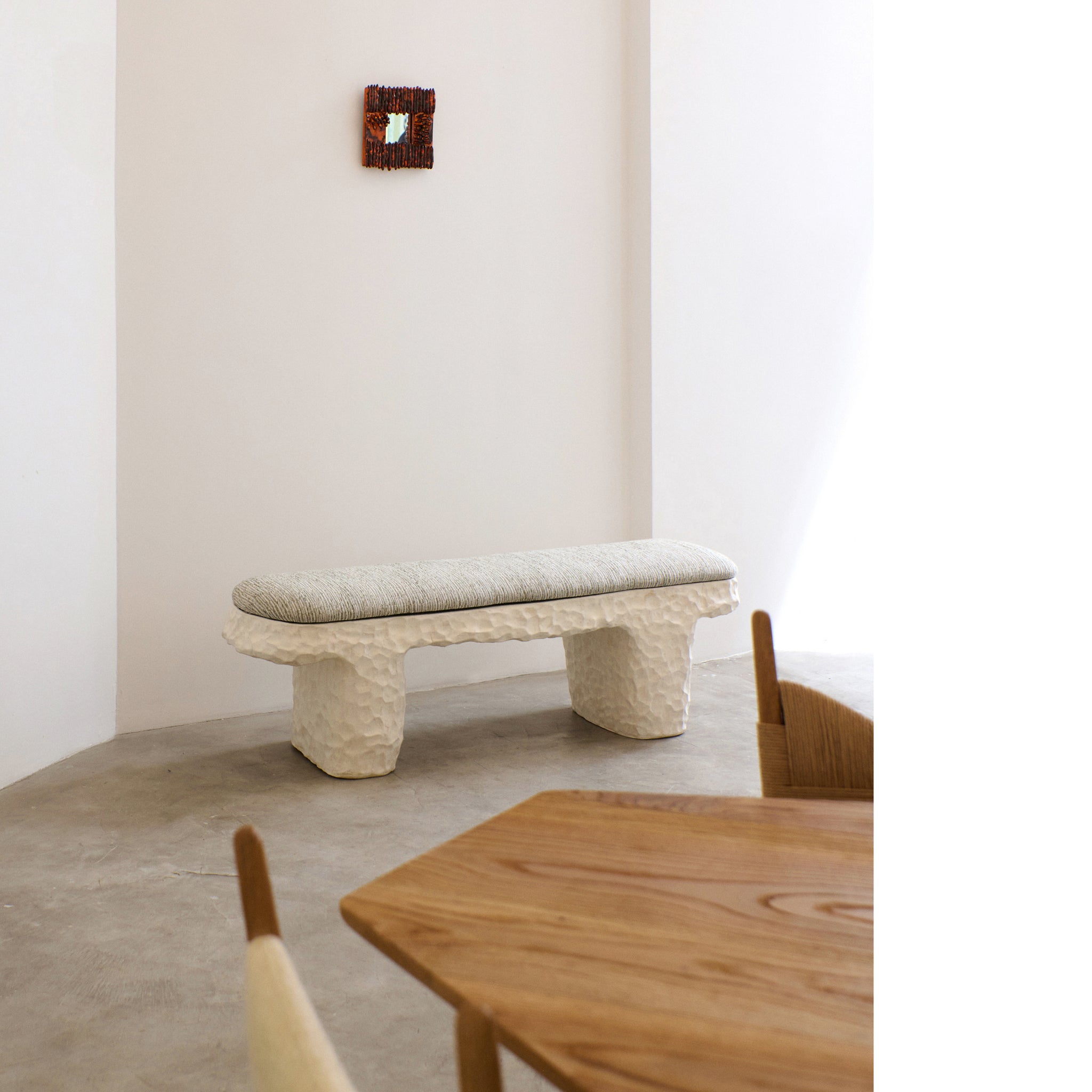 Artisanal ceramic mirror is crafted by skilled artisans in Project 213A's own ceramic workshop. The frame is decorated with sculptural finger ornaments.