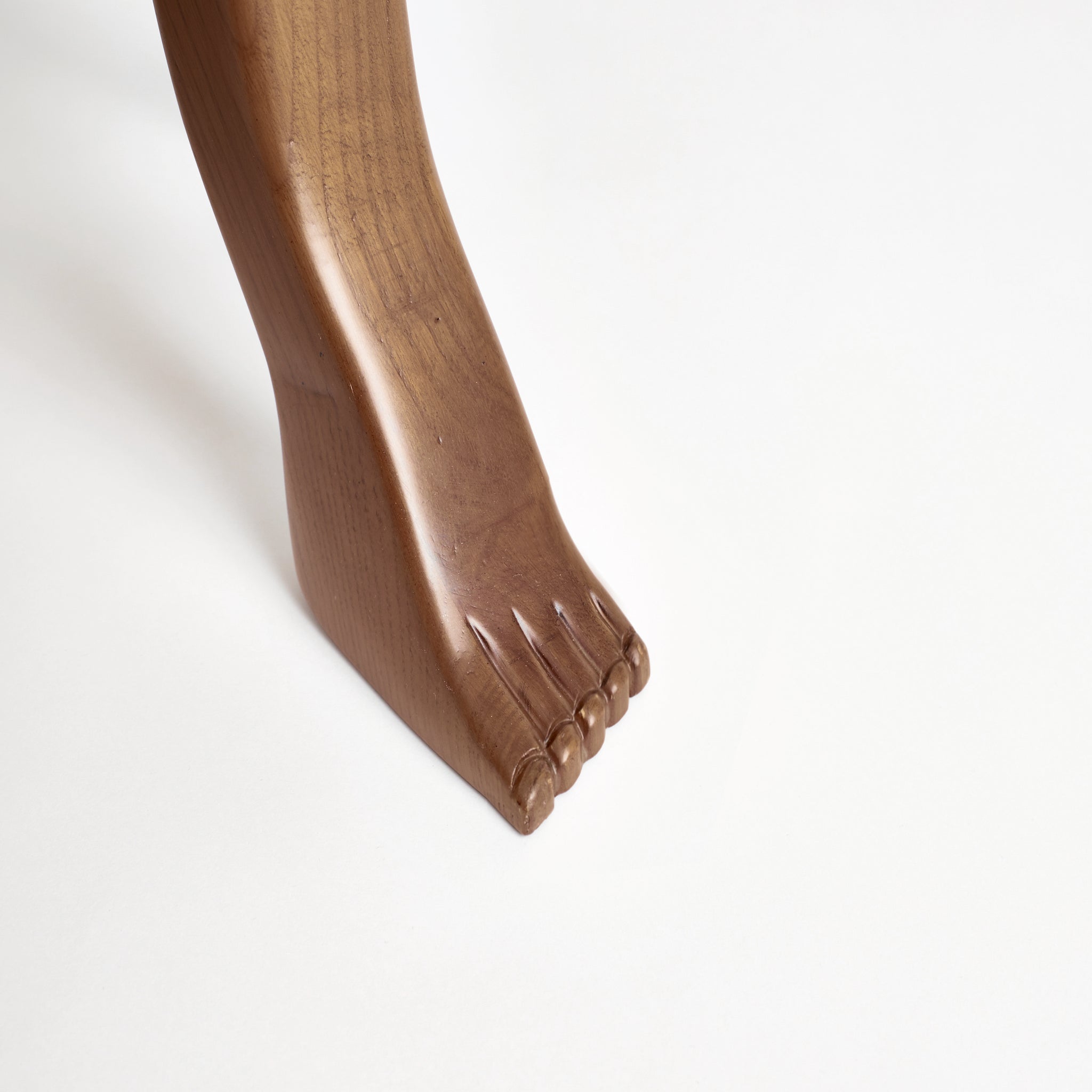 The Foot is part of the "Foot collection" and is hand-carved by skilled artisans from solid chestnut. The design was inspired by a traditional milking stool which stands on three individually shaped legs of which one has a foot.