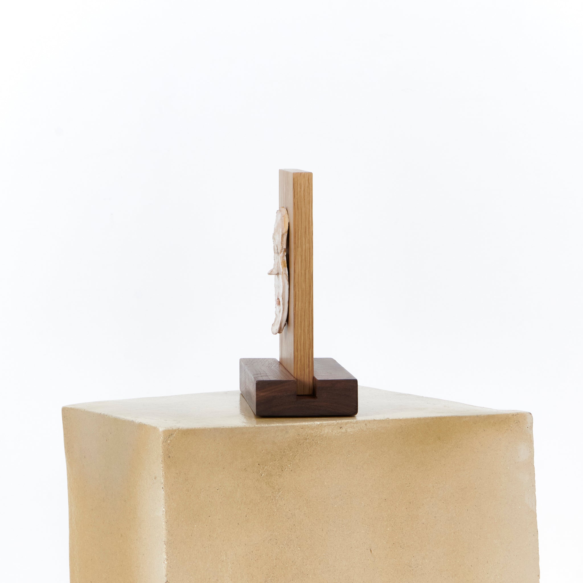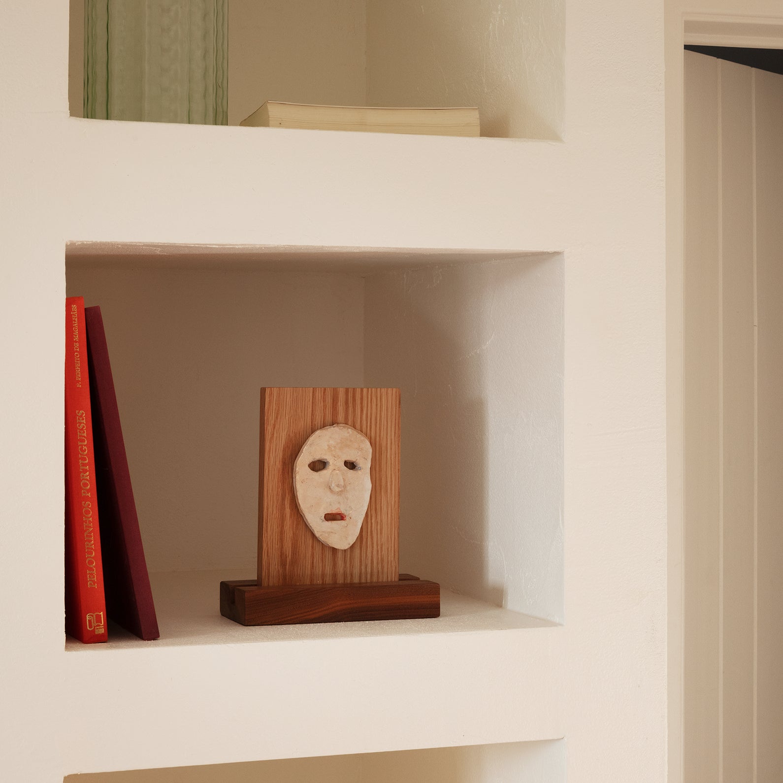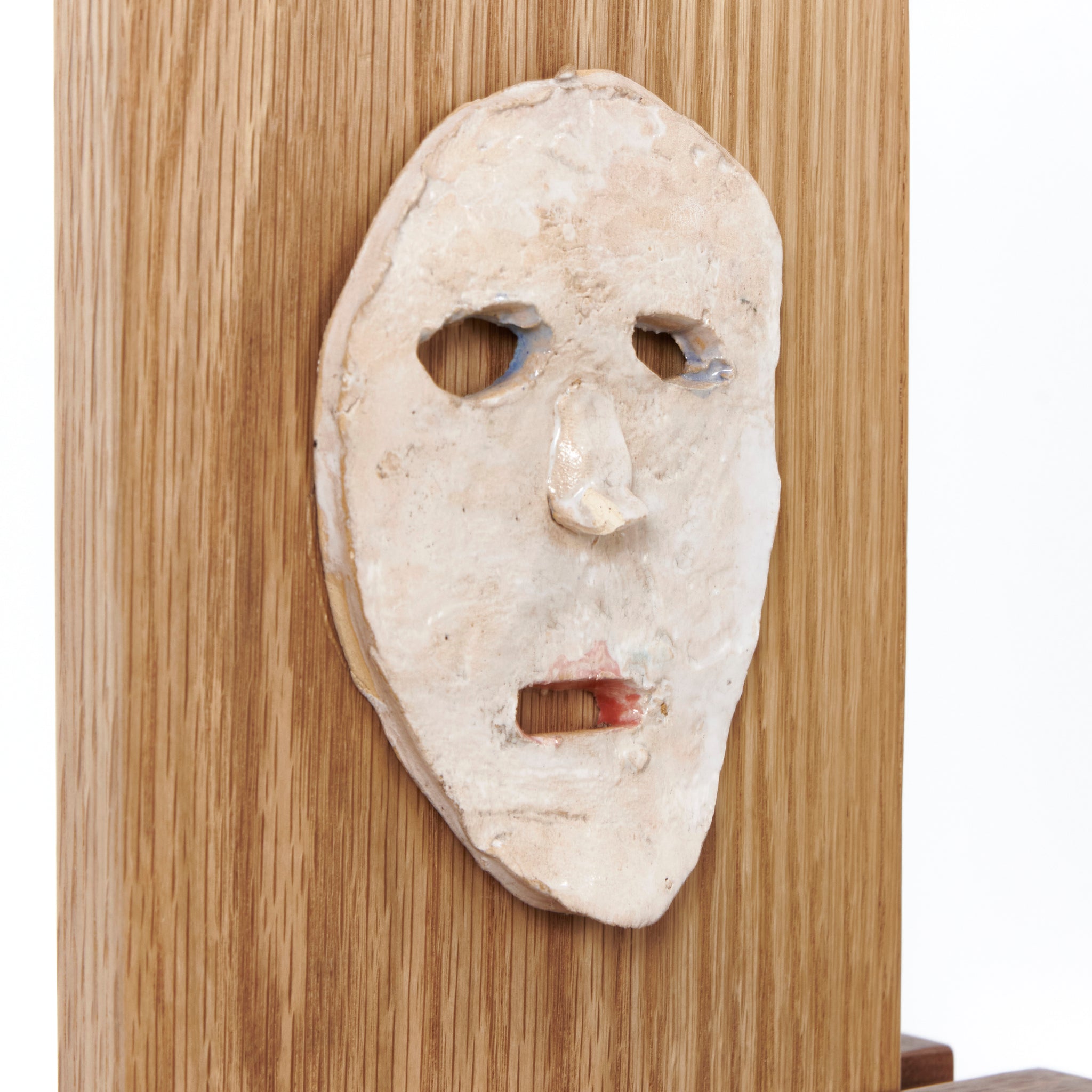 Ceramic mask on walnut and oak frame, Tom R PORTER, London.