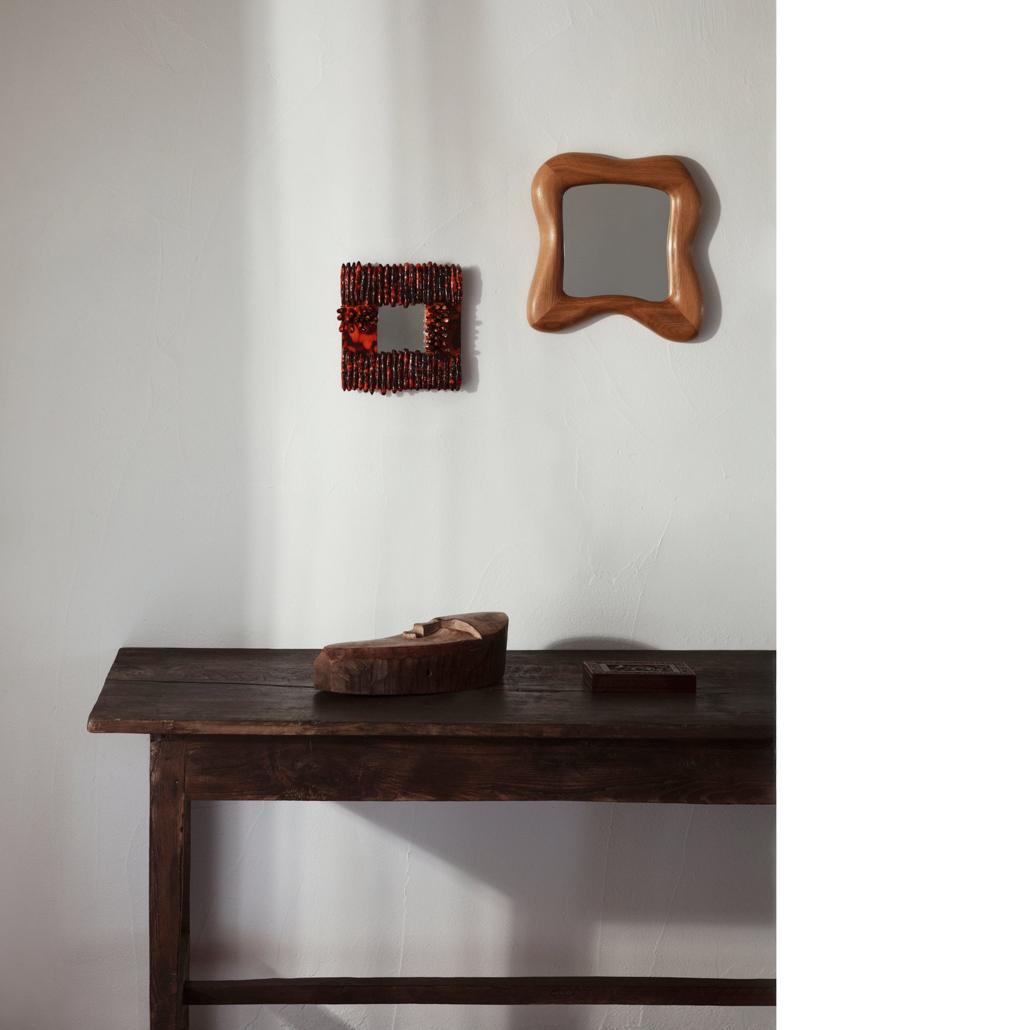The Minho mirror is framed in solid oak wood with an abstract organic shape. Crafted by skilled artisans in Northern Portugal.