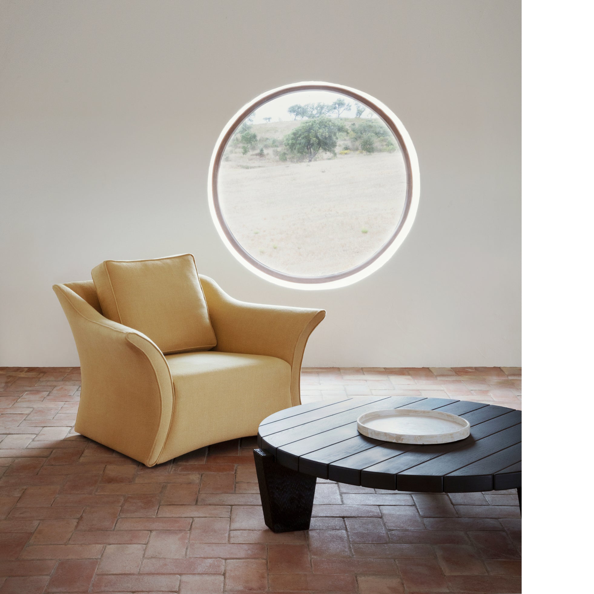 Circular coffee table in solid oak joint together with different width elements. Handmade in Northern Portugal.