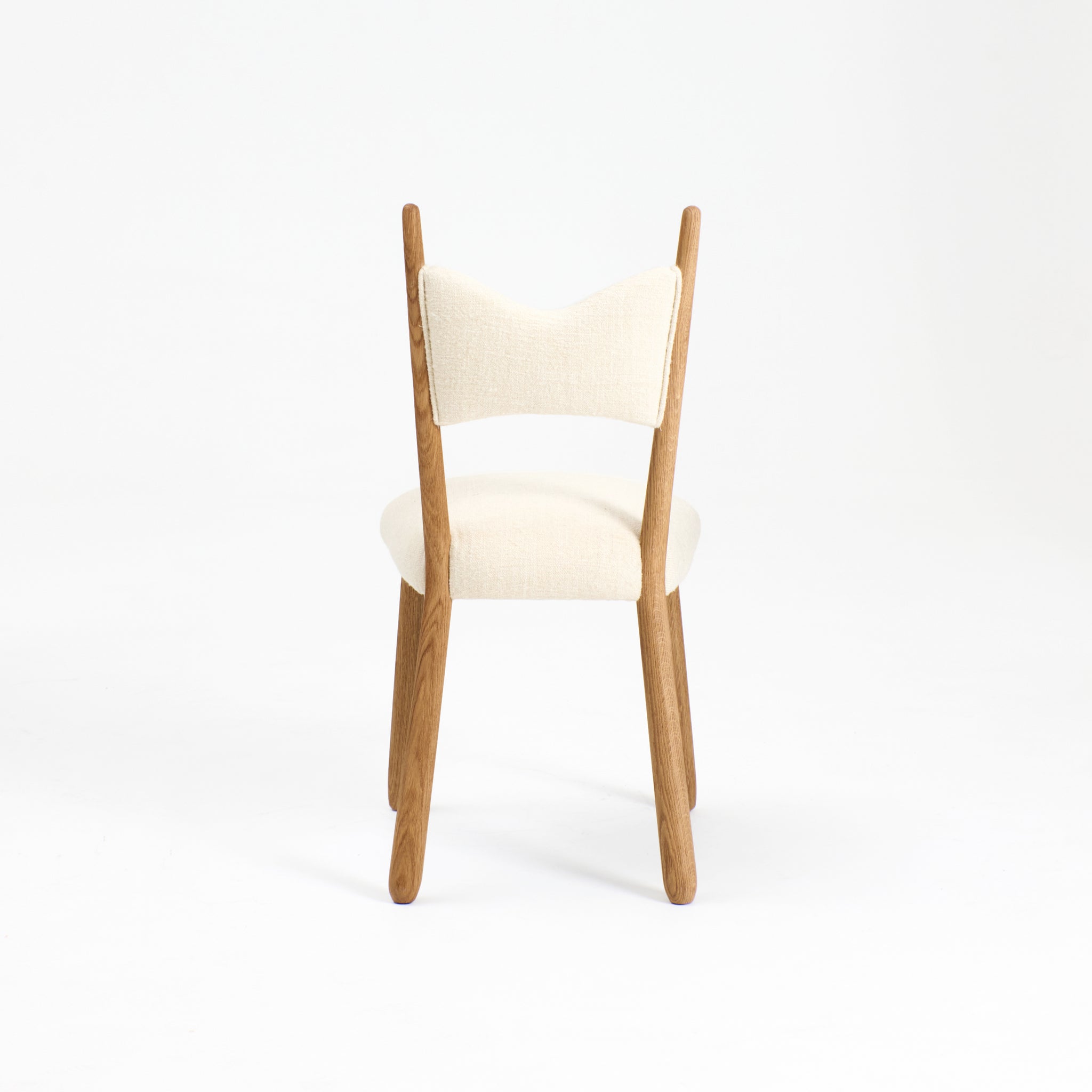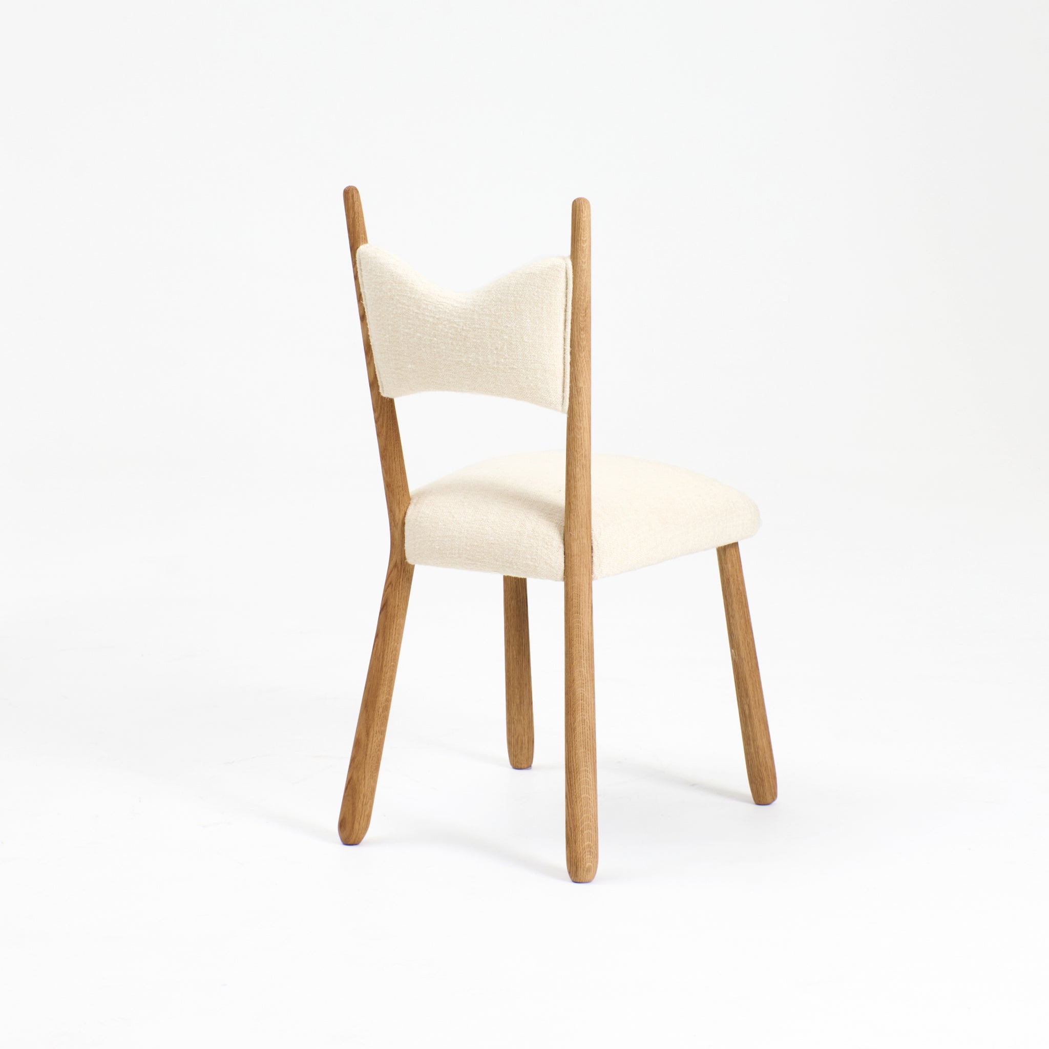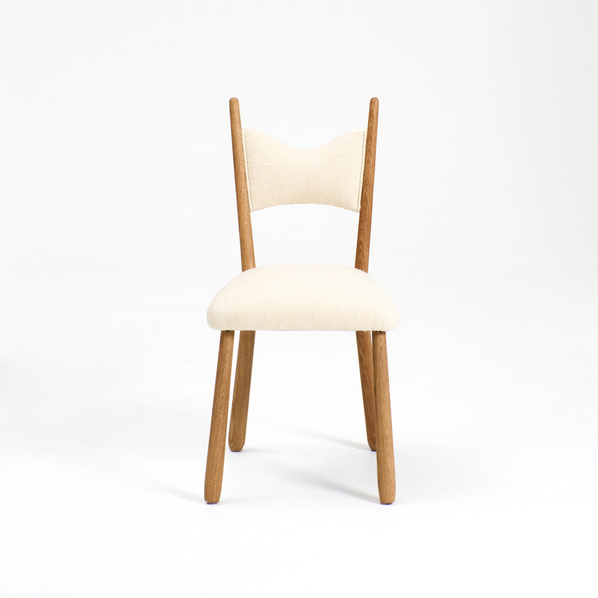 Timeless design with an organic shaped backrest. This chair comes in two backrest options: Upholstered or papercord weaving. Crafted by hand in Northern Portugal.