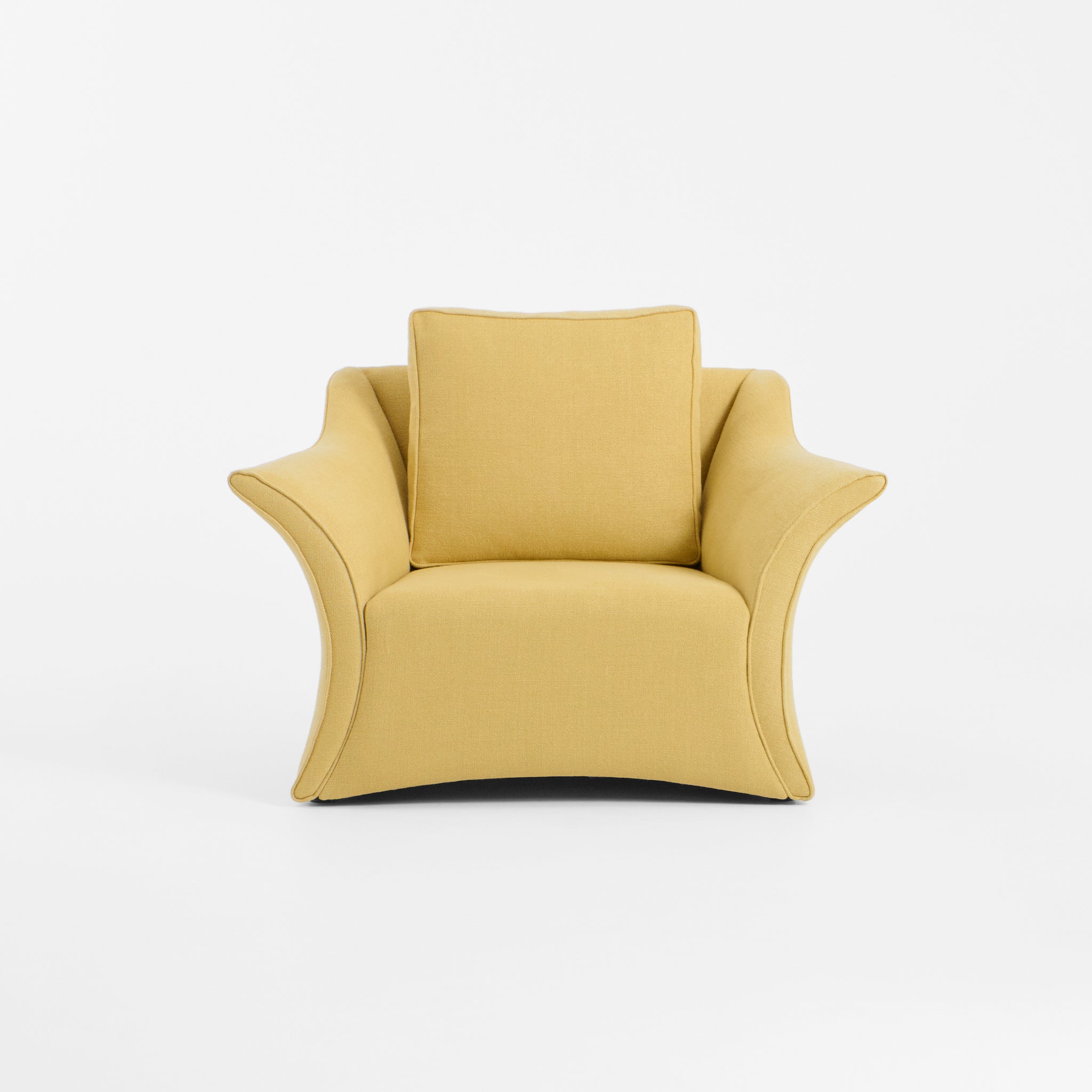 This lounge chair has an elegant shape with curved edges making this a centrepiece for any living space. Available in customers own choice of fabric.