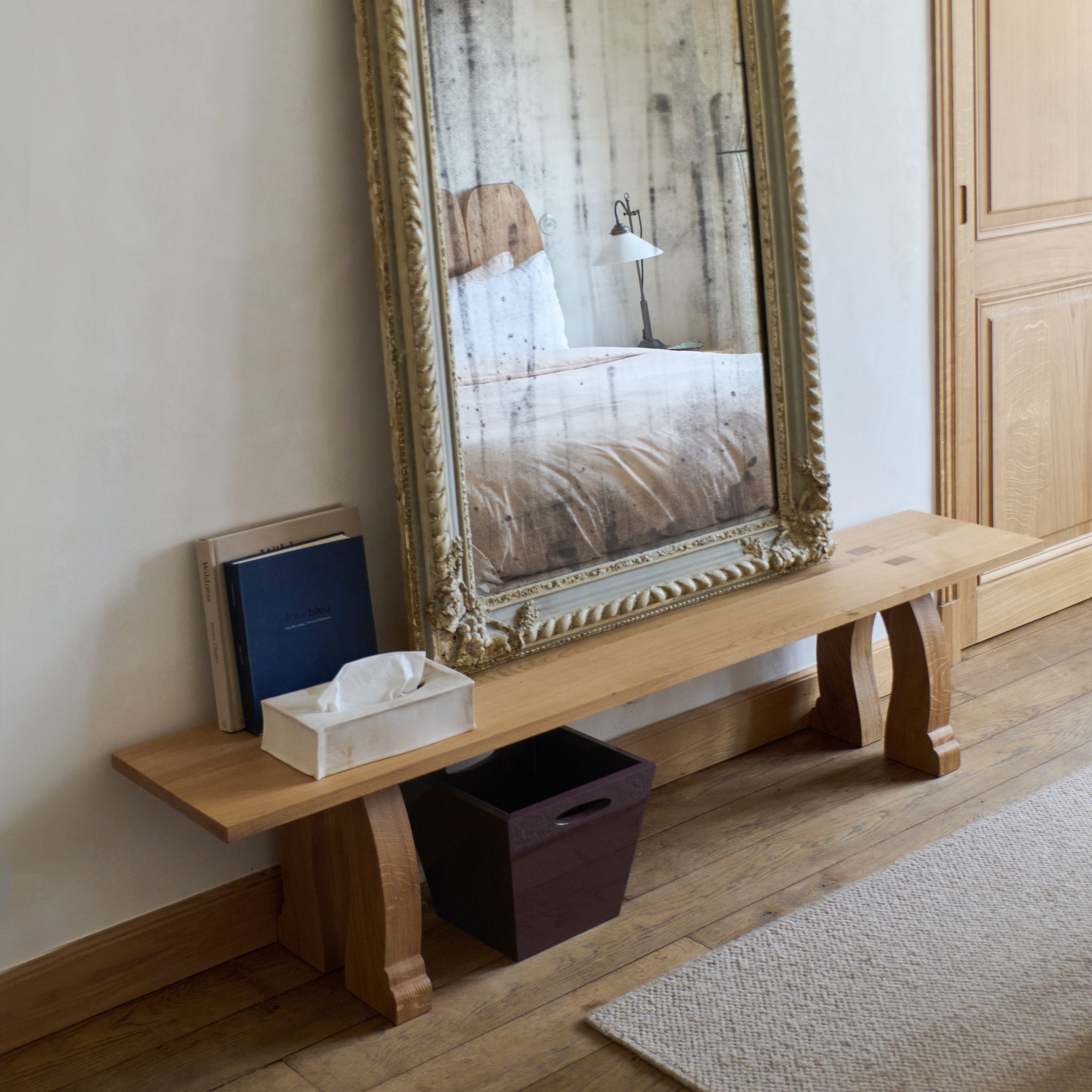 This bench combines traditional design features with a simplistic appearance. Crafted by hand from solid oak wood in Northern Portugal.