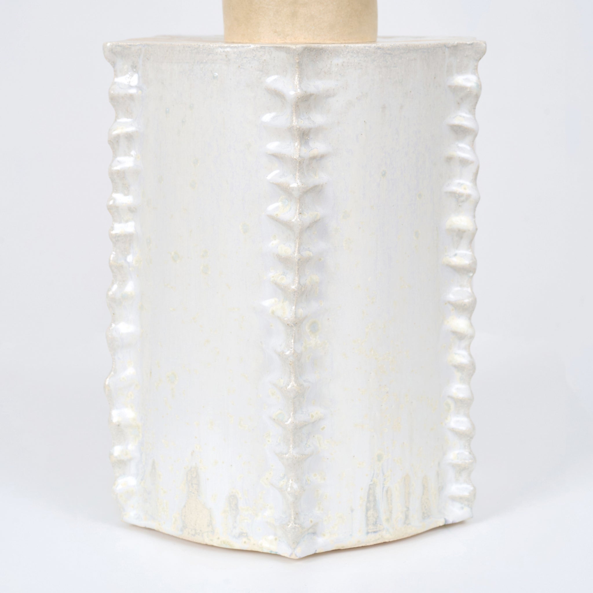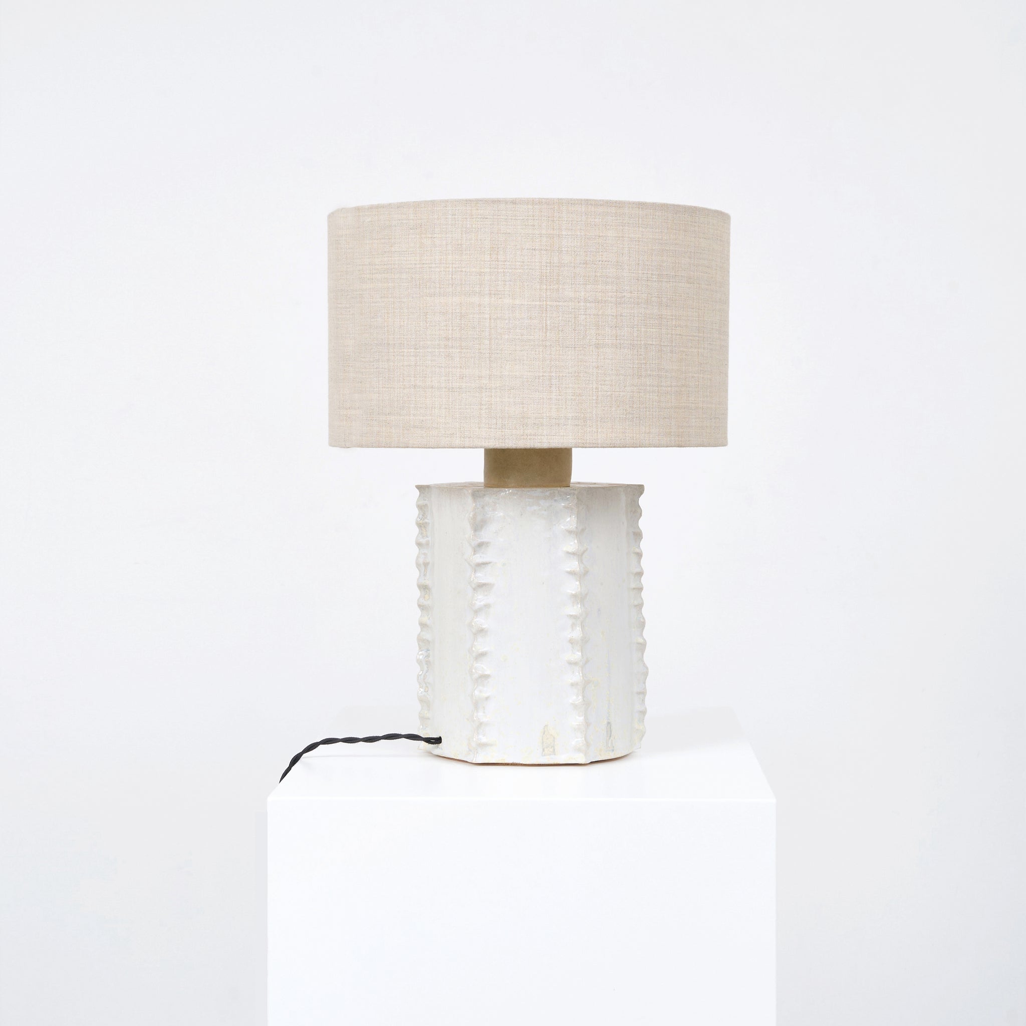 Artisanal ceramic light with a textured detailing, made in Project 213A's own ceramic workshop. Each piece is unique due to its handmade nature, shapes and shades of the ceramic base can vary slightly.