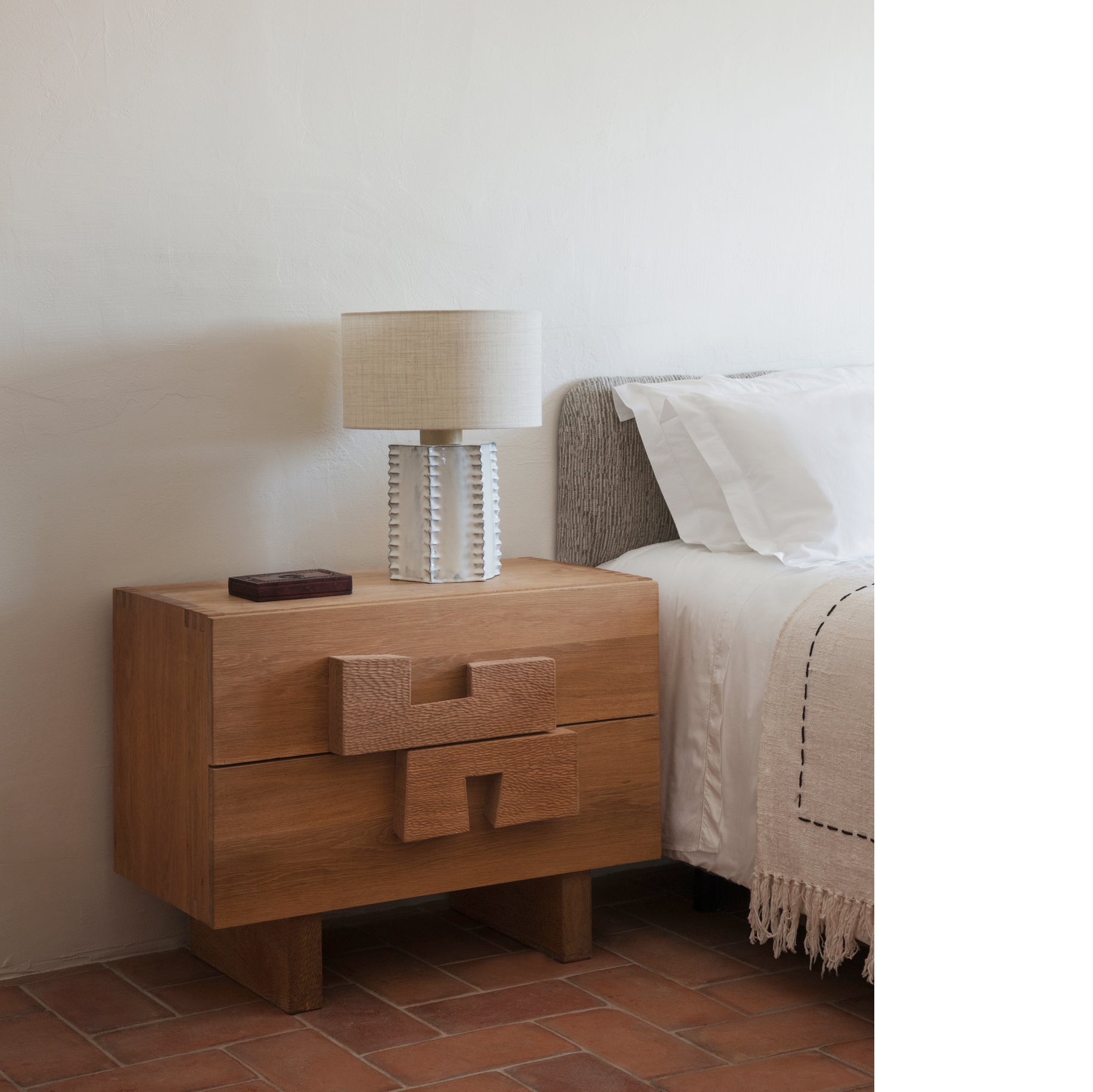 Artisanal ceramic light with a textured detailing, made in Project 213A's own ceramic workshop. Each piece is unique due to its handmade nature, shapes and shades of the ceramic base can vary slightly.